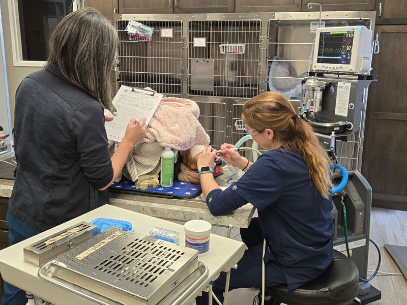 We use the same monitoring equipment used in human hospitals to make sure that we are keeping your pet safe during their anesthetic event. Two technicians are assigned to every surgery patient to insure they are adequately taken care of. We also limit our surgery patients to 1-2 max a day to make sure that we can focus and be attentive to your pet and their surgical procedure.